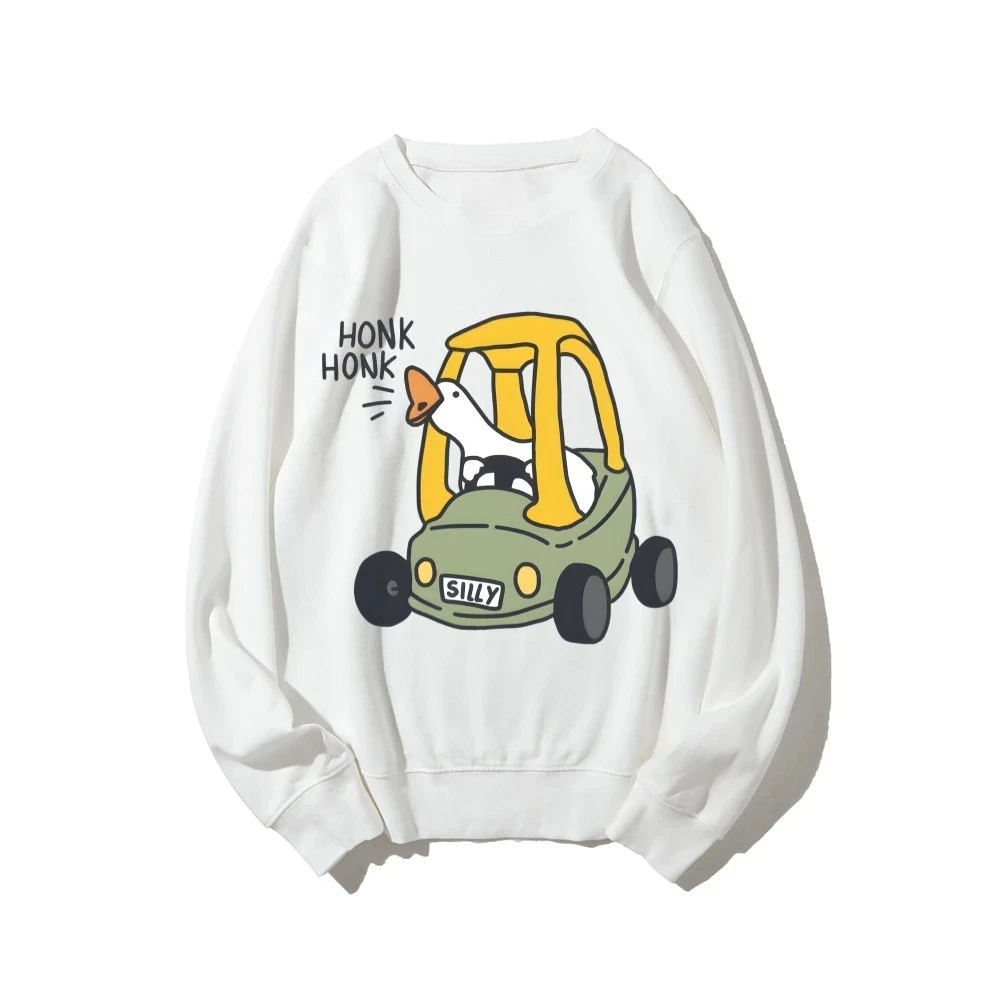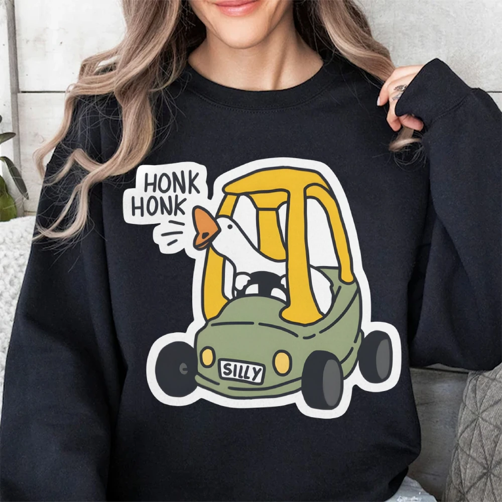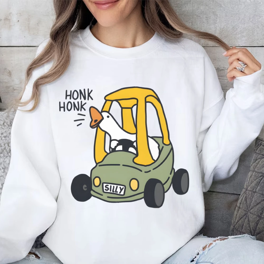 Silly Goose Drving Honk Honk Funny Cartoon Graphic Printed Sweatshirts Streetwear Women Y2k Sweatshirt Autumn Winter Clothing